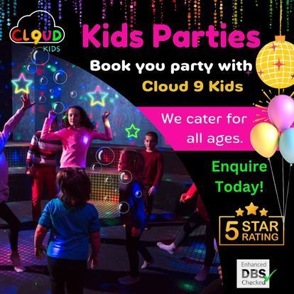 Here at Cloud 9 Kids we Cater for indoor and outdoor parties and can Build a package to suit all Budgets